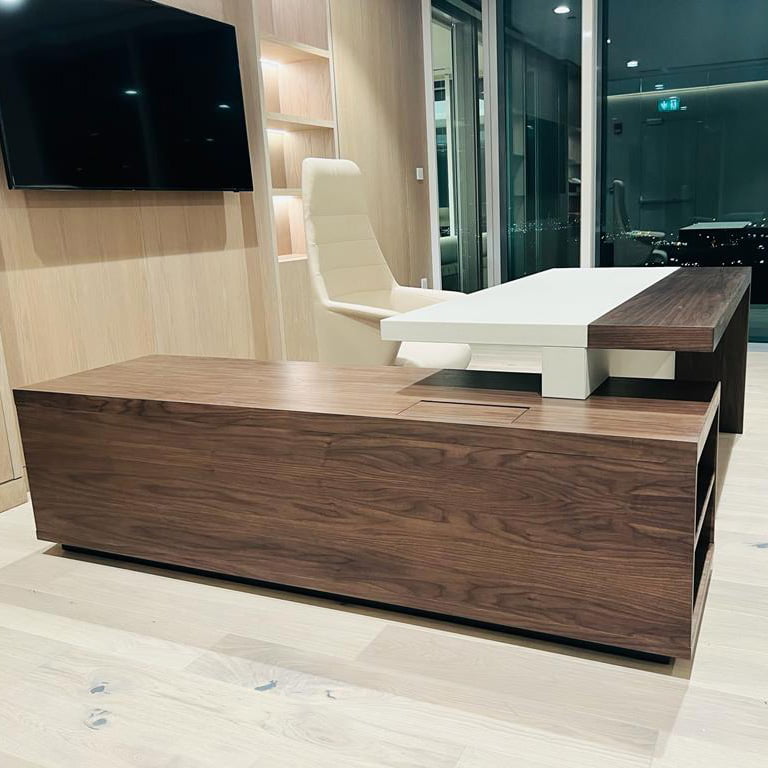 Step into a world of executive luxury with our CEO office desk, meticulously designed for the highest level of leadership. This large L-shaped desk, crafted from exquisite wood, exudes a commanding presence in any executive suite. With its generous workspace and ergonomic design, it provides ample room for productivity and organization. The CEO desk combines functionality with sophistication, making it the perfect centerpiece for top-tier executives who demand both style and performance. Elevate your office to new heights of prestige with this prestigious CEO desk.