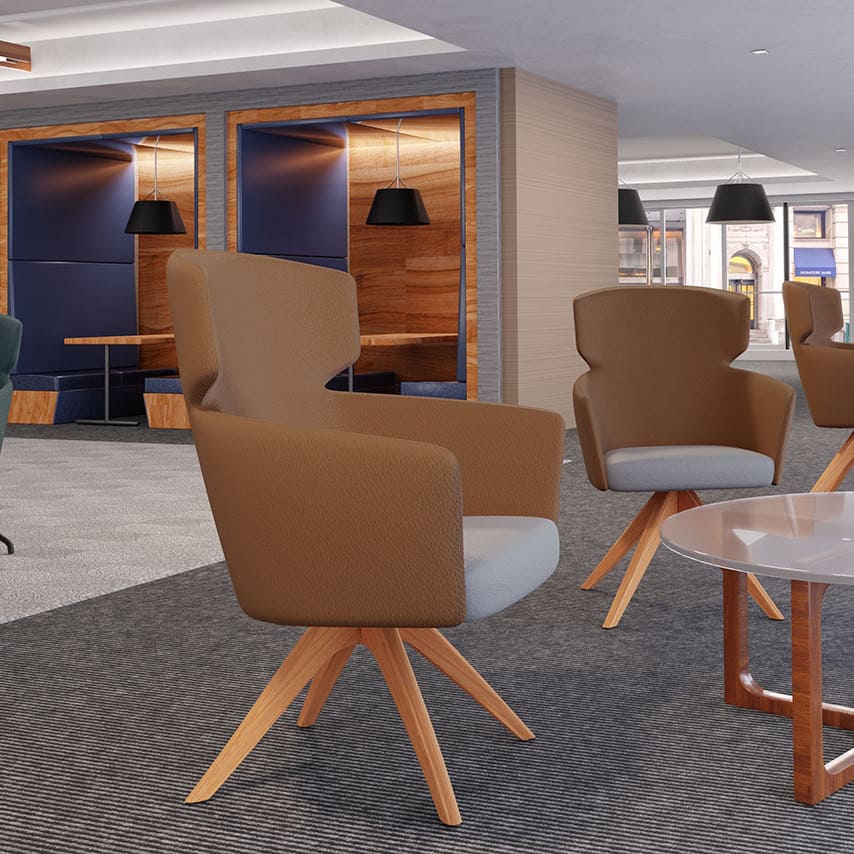 This lounge chair is made with a moulded foam injected over a steel shell structure, ensuring both durability and unparalleled support. The robust wooden seat base enhances stability while adding a touch of natural charm to its contemporary design.
