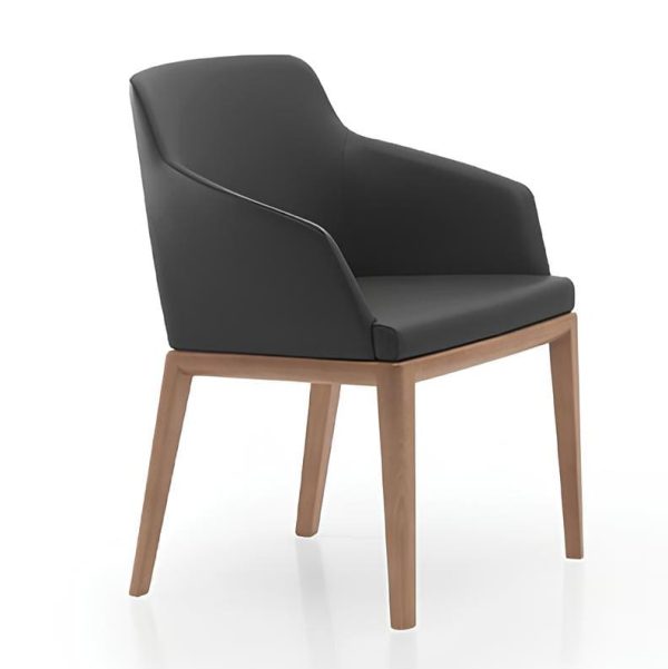 The chair’s supportive backrest and gently curved armrests offer a cozy and relaxing seating experience, perfect for long periods of sitting. Its light wood legs provide a sturdy base, ensuring durability and stability. The wood finish beautifully contrasts with the grey upholstery, creating a contemporary aesthetic that complements any decor.