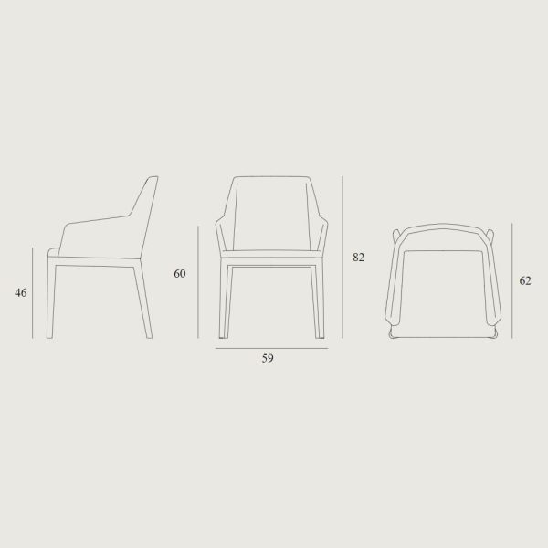 This chair features a sleek upholstered seat and backrest, providing both comfort and style. The fabric is subtly textured, adding a layer of visual interest while maintaining a refined look.